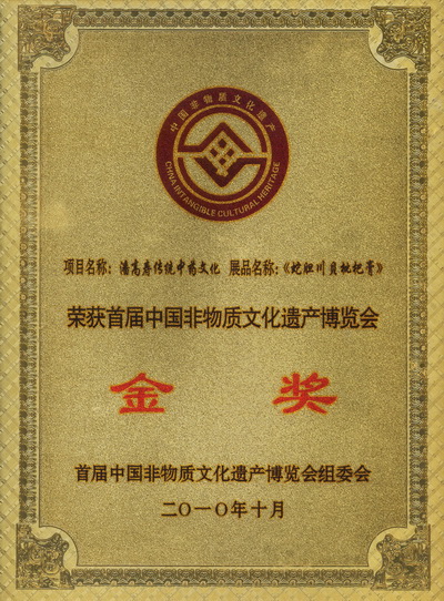 蛇膽川貝枇杷膏喜獲“首屆中國非物質文化遺產博覽會”金獎