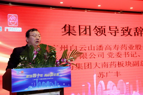 2019年1月17日,廣藥集團(tuán)營銷俱樂部以“激蕩四十年 再啟新征程”為主題,在福州于山賓館召開戰(zhàn)略合作研討會。廣藥集團(tuán)大南藥板塊副總監(jiān)、廣州白云山潘高壽藥業(yè)股份有限公司黨委書記蘇廣豐出席會議并致辭。營銷俱樂部主任蔡興仲、廣藥集團(tuán)在福建地區(qū)多家合作企業(yè)和廣藥集團(tuán)多家屬下企業(yè)的相關(guān)人員參加會議。